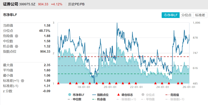 根据中信建投证券统计,以42家上市券商为样本统计历史数据,2012年以来,当上市券商年化ROE处于7%~8%区间时,证券指数PB估值通常在1.75~2倍(预期次年ROE上行时靠近上沿,反之靠下沿)。2025年前三季度上市券商年化ROE已达7.1%,对应PB估值在8月峰值仅1.6倍、三季度末1.47倍、12月31日1.39倍,显著低于历史同ROE水平的估值区间,存在明显修复空间。