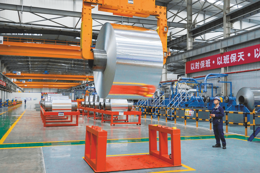 在南宁产投铝基新材料集团有限责任公司年产20万吨新能源电池铝箔技改项目(二期)生产车间,一派繁忙生产景象。叶子榕 摄 来源:南宁市融媒体中心