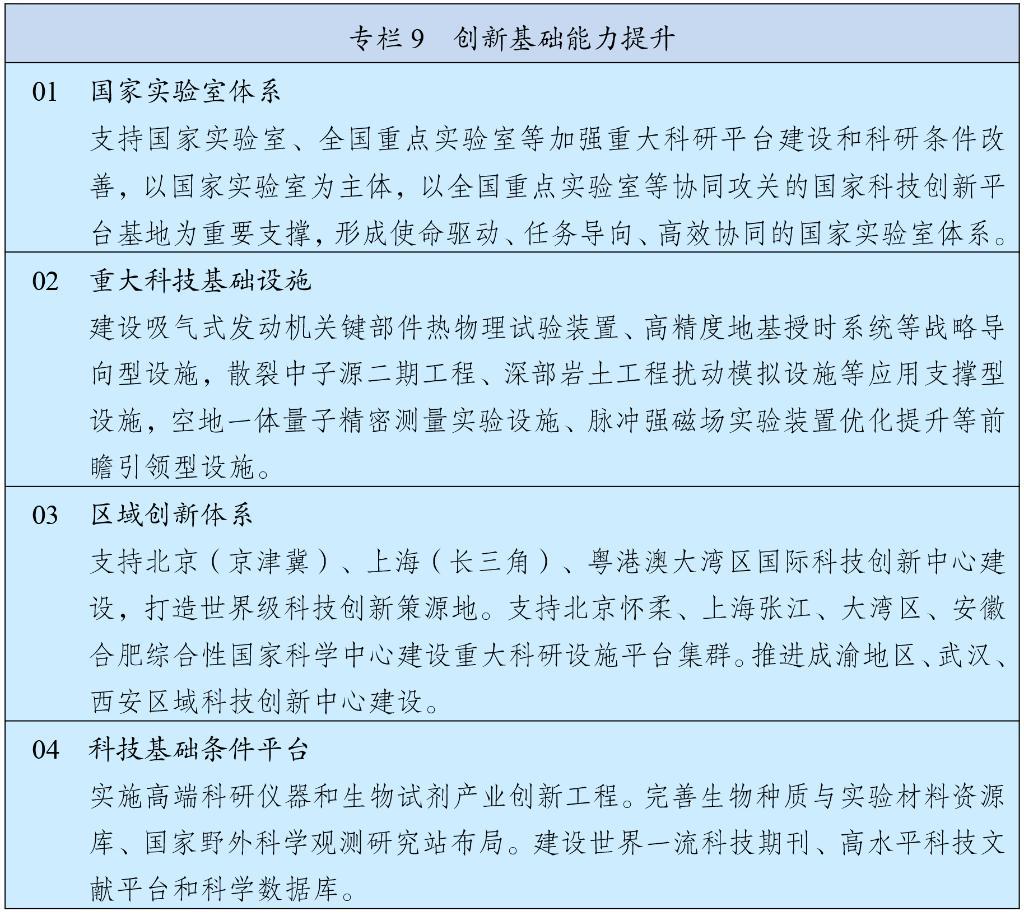 加强基础研究战略性、前瞻性、体系化布局,统筹推进目标导向和自由探索的基础研究。加快形成基础研究多元化投入格局,加大财政投入力度,完善税收激励政策,引导有条件的地方、企业、社会组织、个人支持基础研究,鼓励设立基础研究公益基金,实现基础研究经费投入占研发经费投入比重明显提高。完善竞争性支持和稳定支持相结合的投入机制,加大对从事基础研究的优势团队和青年科技人才长期稳定支持,探索长周期资助模式。鼓励开展高风险、高价值基础研究,营造鼓励探索、宽容失败的良好环境。围绕极宏观、极微观、极端条件、极综合交叉的科学前沿,加强新兴领域、交叉融合和跨学科基础研究。
